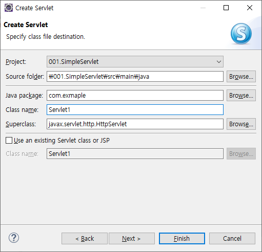 3. Servlet1.java 코드가 생성됨.