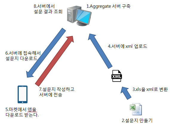 ODK에서 제공해주는 것은 설문조사 앱(안드로이드앱 - ODK Collect)과 설문지를 만드는 방법, 웹서버를 구축하는 방법이다.